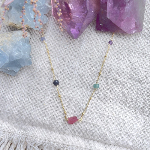 Collar Decretos y afirmaciones de Rubí con multipiedras facetadas