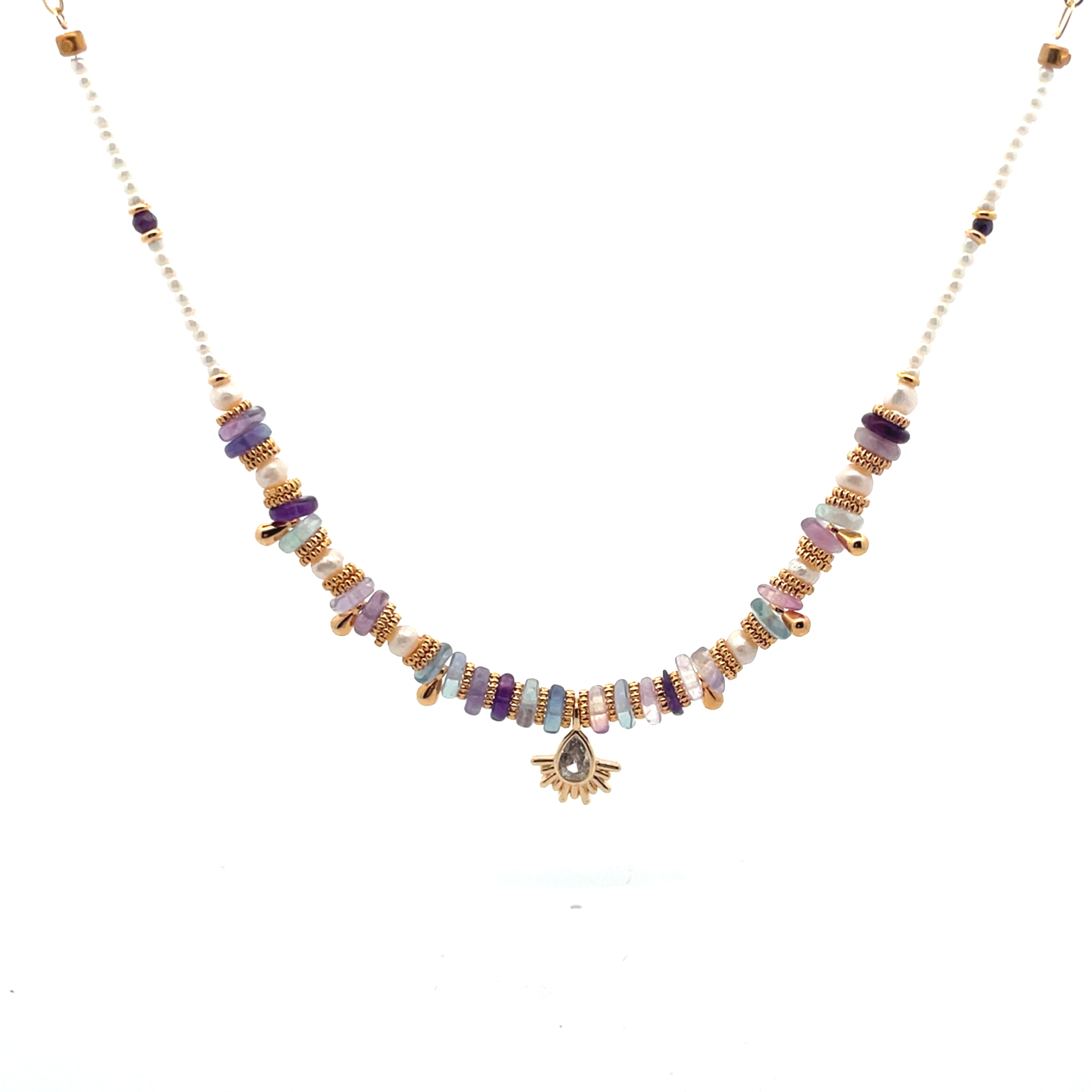 Fluorita: La Fluorita es una hermosa piedra, translucida y transparente, con una gama de tonos que va desde el purpura al verde, al amarillo, al naranja, al azul, al rosa hasta llegar al negro.El nombre de la fluorita procede del vocablo latín “fluere” que significa fluir por lo que es un cristal que nos ayuda a fluir en la vida,  a dejar de controlar y poner resistencia. La florurita también es protectora especialmente a nivel psíquico. Limpia y estabiliza el aura, se conecta con chakra corazón, garganta, entrecejo y corona por lo que es un cristal sumamente espiritual que nos puede ayudar en meditación y a conectar con nuestro yo superior.