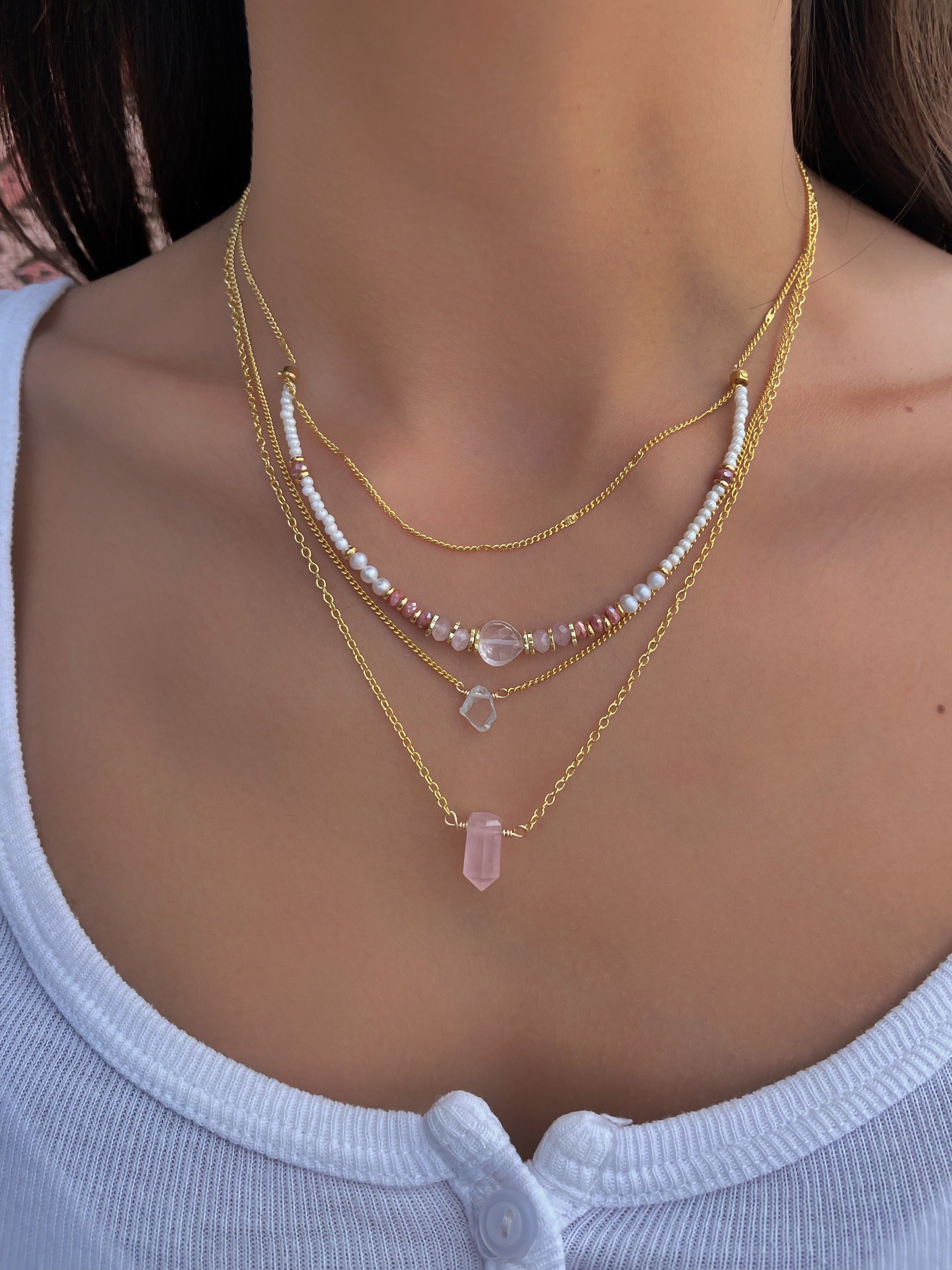 Collares de piedras naturales en corte de punta prismática hexagonal facetada.